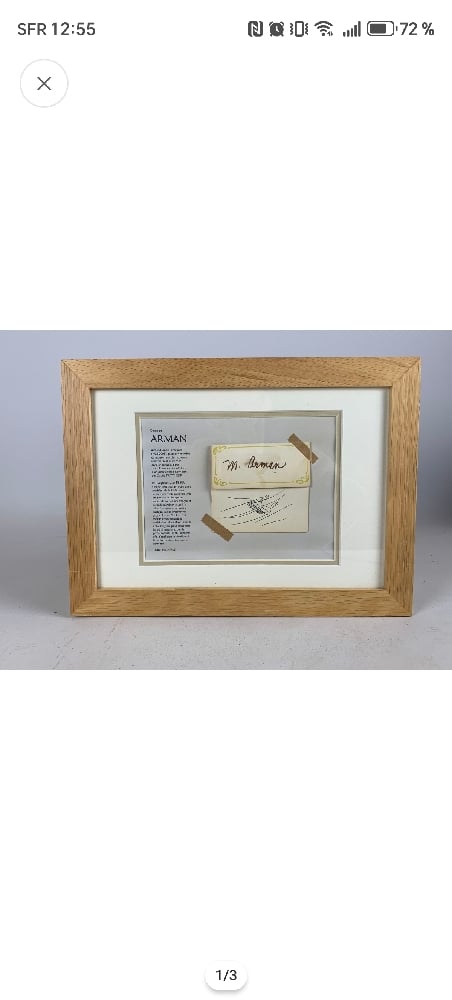 Drawing from Arman. Made at a dinner in New York. 1990. Framed. Size of the drawing : 3,9x3,5 inches.