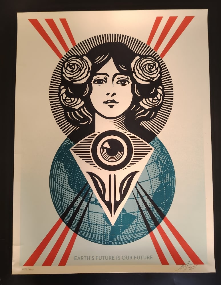 Shepard Fairey "Obey", "Earth's future is our future".